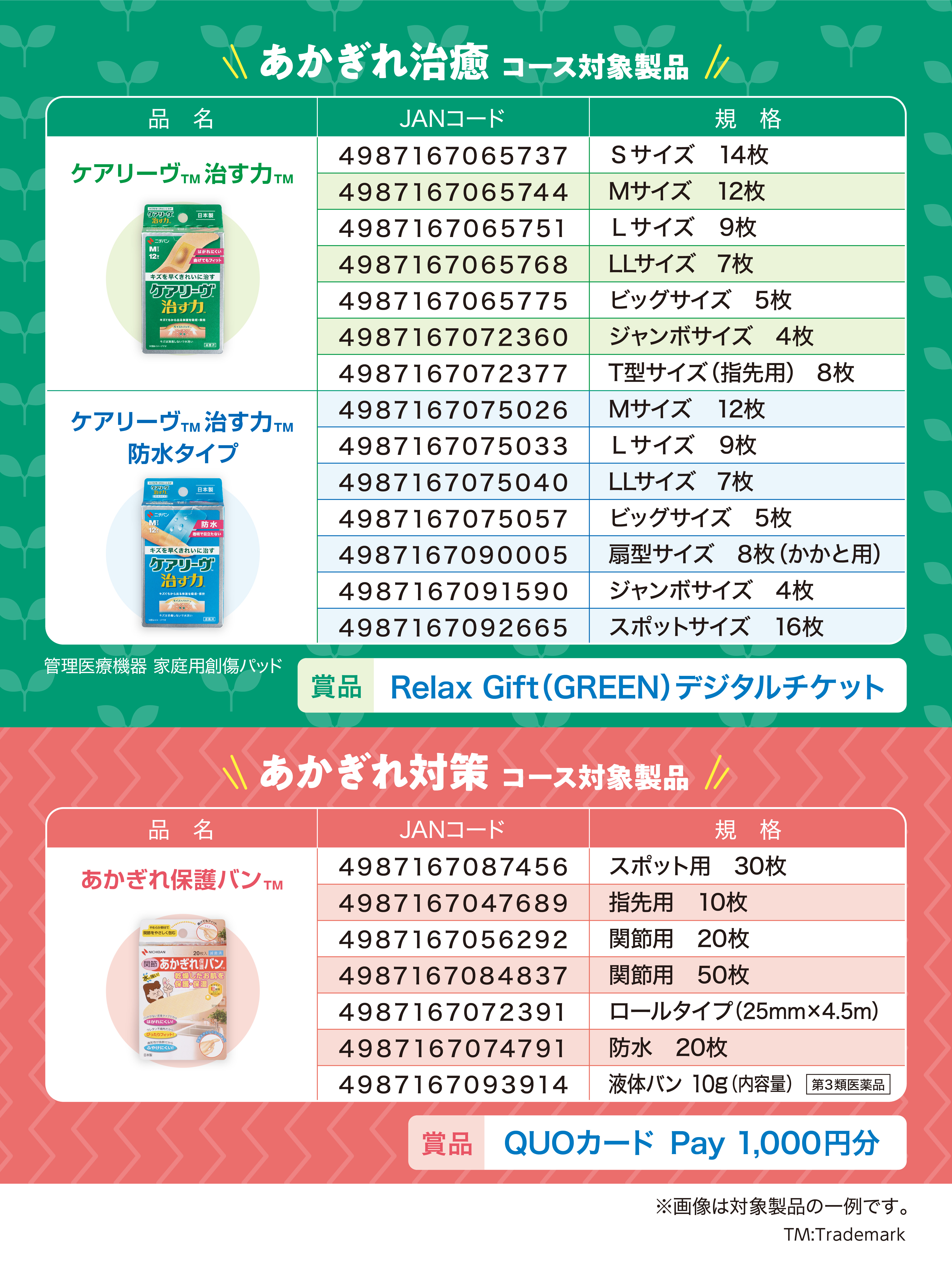・治癒コース(ケアリーヴ治す力シリーズを1点購入で応募可能)